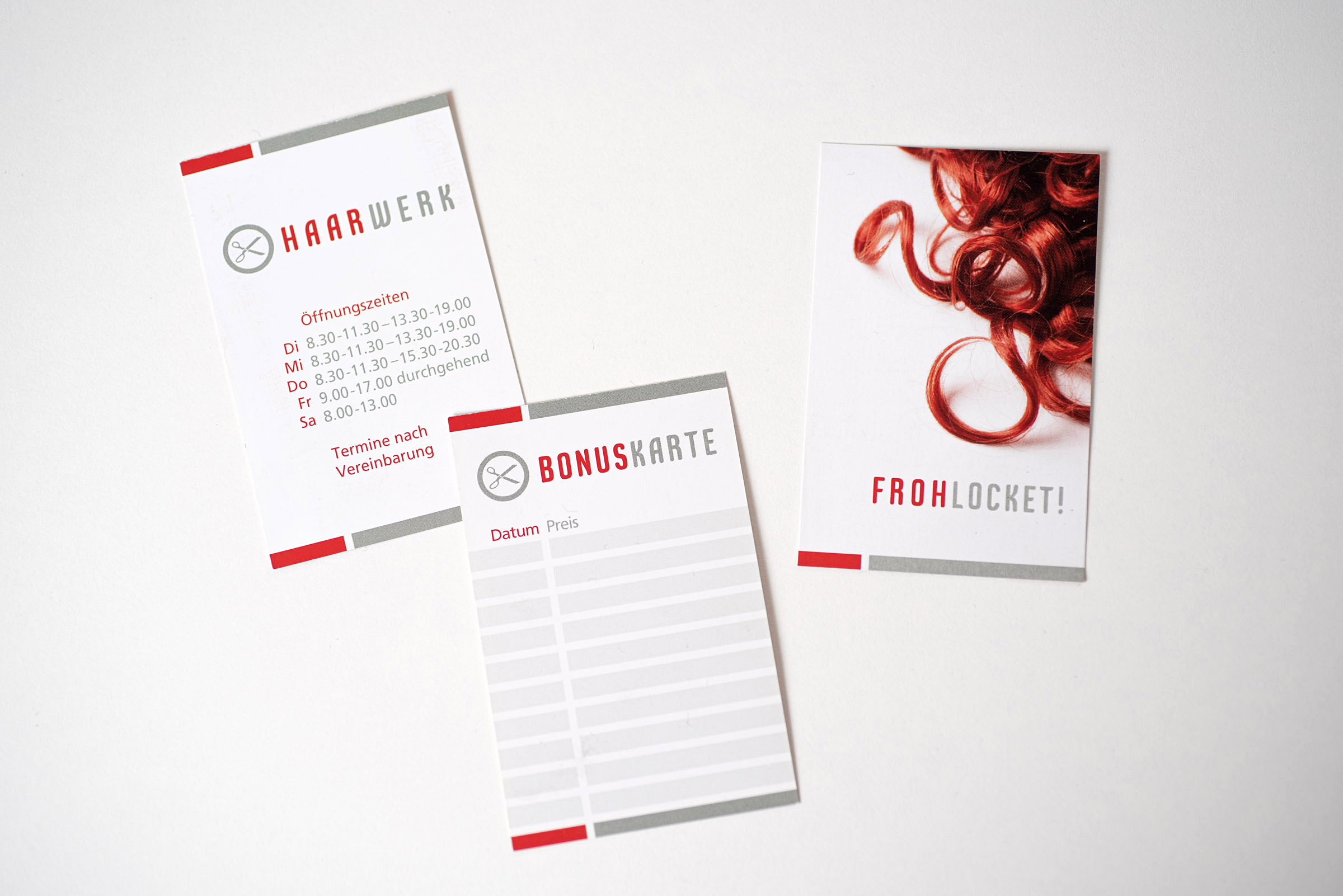 Gutscheinkarten, Geschäftsunterlagen und Werbeanzeigen für Haarwerk Eva Högner in Burladingen